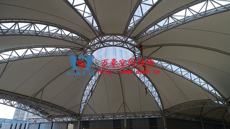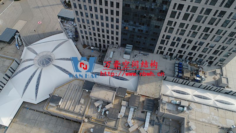 其中,新泰卓越·財富廣場膜結構屋頂項目由寧波萬豪空間結構工程有限公司承建。