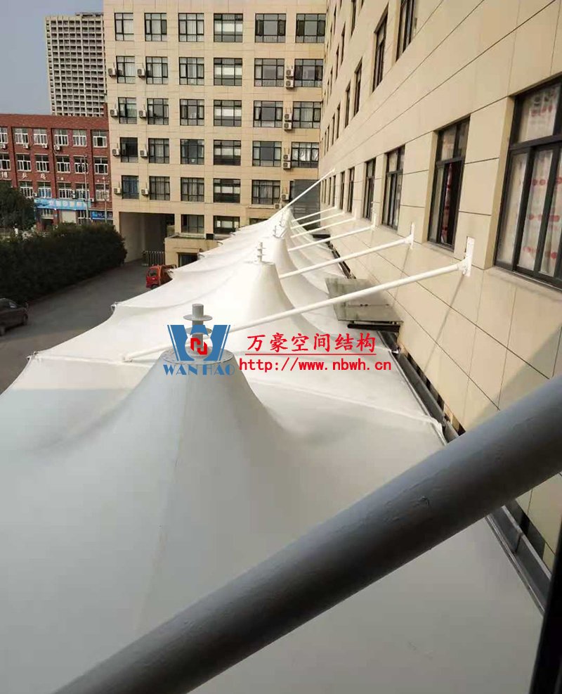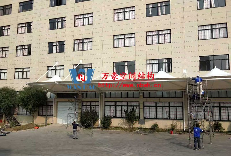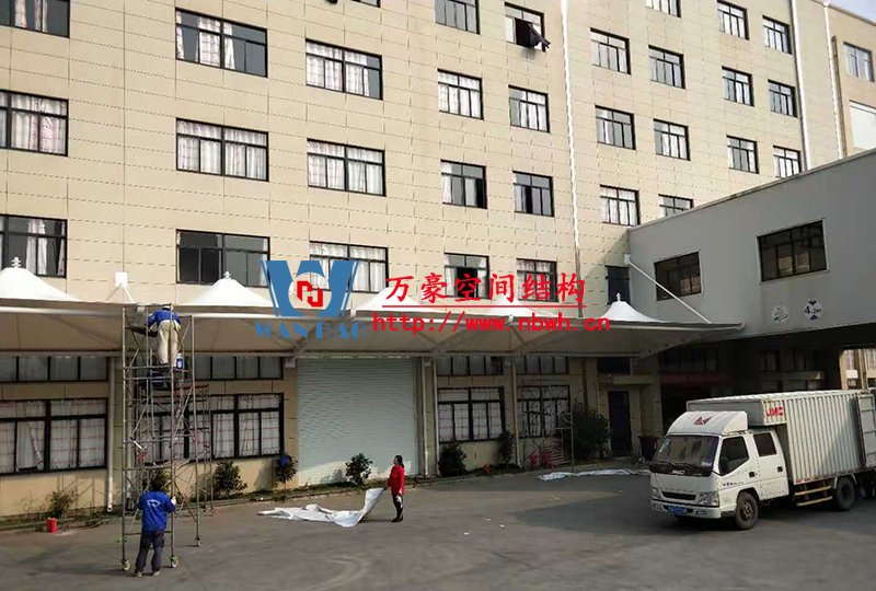 寧波中天家居膜結構雨棚工程位于浙江省寧波市寧海縣,由寧波萬豪空間結構工程有限公司承建。