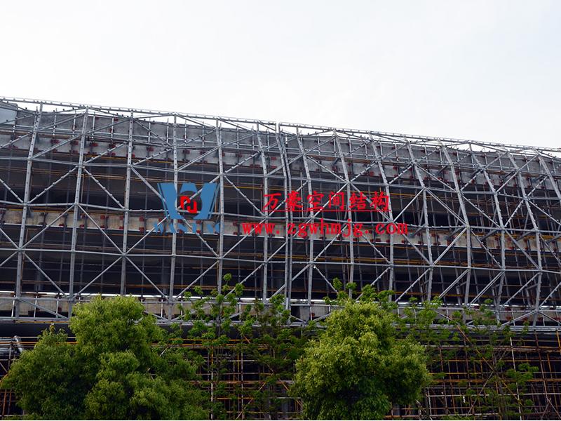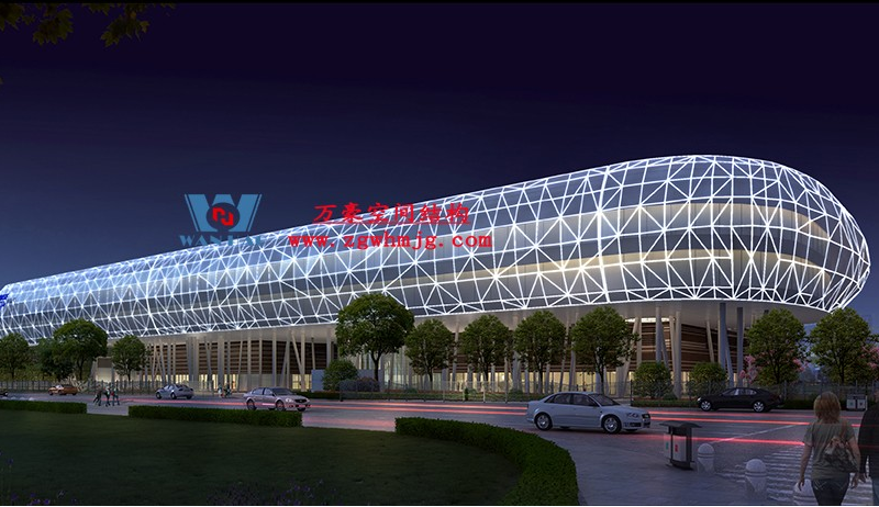 寧波菲仕展廳外立面網(wǎng)格膜結(jié)構(gòu)項目,方案由意大利著名建筑師設計,設計靈感取鉆石之意。為了實現(xiàn)多變的設計效果,整個外立面采用了8000根形狀各異的鋼構(gòu)件,每根桿件單獨編號、定位,實施難度極大。外層使用PTFE網(wǎng)格膜,樹立了PTFE網(wǎng)格膜使用的新標桿。用鋼量880噸,PTFE膜展開面積12660平方。