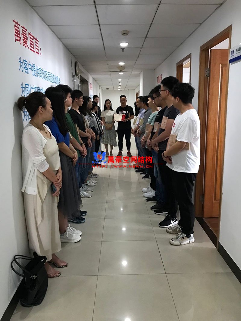 12日晨會,在主持人分享完晨會文章心得后,萬豪總經辦主任給我們的余姚財政局膜結構車棚項目經理任經理進行了頒獎,獎勵內容包括榮譽證書和現金獎勵。