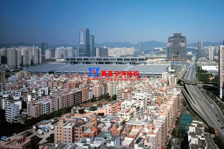 2001年的深圳會展中心國際方案競賽就是在這樣一個大背景下舉行的。用地位于城市新中心——福田中心區南北中軸線上,但狹小的用地和緊張的交通條件給建筑設計帶來了很大的困難。gmp的建筑師堅信單層展廳最高效、最具功能性,于是建筑師將會議中心“懸浮”在展廳之上,為展廳騰出了首層的空間。同時,由于市中心的區位和周邊林立的高層建筑,會展中心的“第五立面”顯得尤為重要。建筑師希望通過有張力的鋼梁對建筑進行有序分割,形成有韻律、有節奏的體量、立面和屋頂,同時屋頂采用金屬百葉,一方面打破“鐵皮盒子”的形象,另一方面也能為展廳引入自然光線。