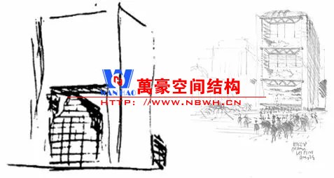 當然,懸掛結(jié)構(gòu)的結(jié)構(gòu)效率不高。結(jié)構(gòu)的造價往往是偏高的,但是綜合考慮其他方面,懸掛結(jié)構(gòu)不失為一種創(chuàng)新性的選擇。