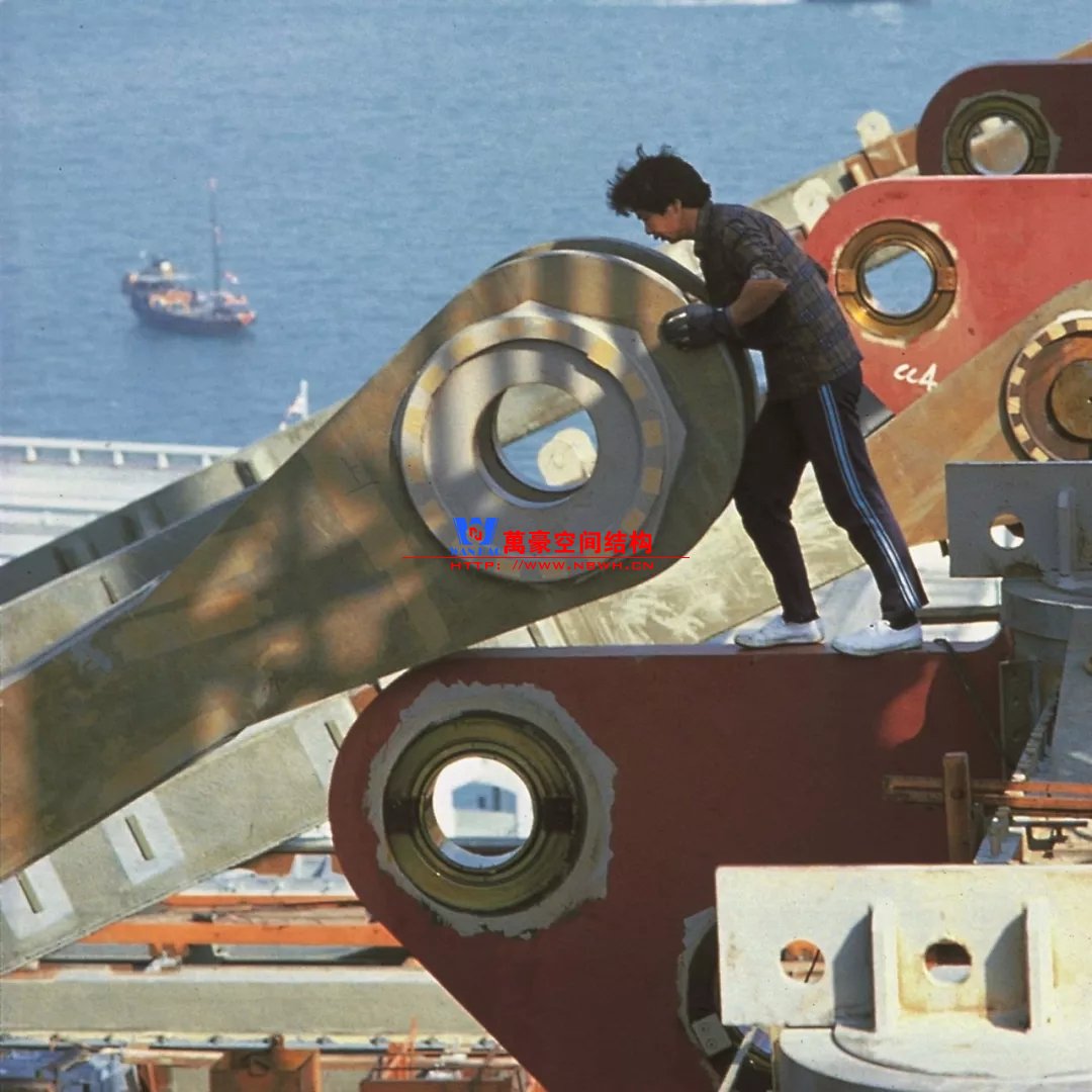 同時,銀行的地下空間相對固定:保險庫、安全存放、公共展示等。但建筑上部功能非常復雜,且匯豐銀行強調(diào)了對于空間最大程度可變性的要求,而懸掛結(jié)構(gòu)完美地將上部功能變化對下部結(jié)構(gòu)的影響降到最低。這也是采用懸掛結(jié)構(gòu)的一個因素。