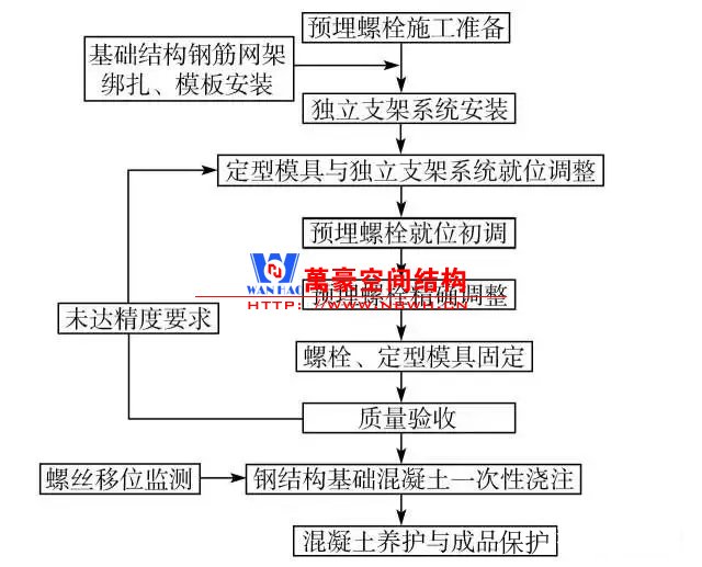 鋼結構預埋螺栓的工藝流程圖如圖 1 所示。