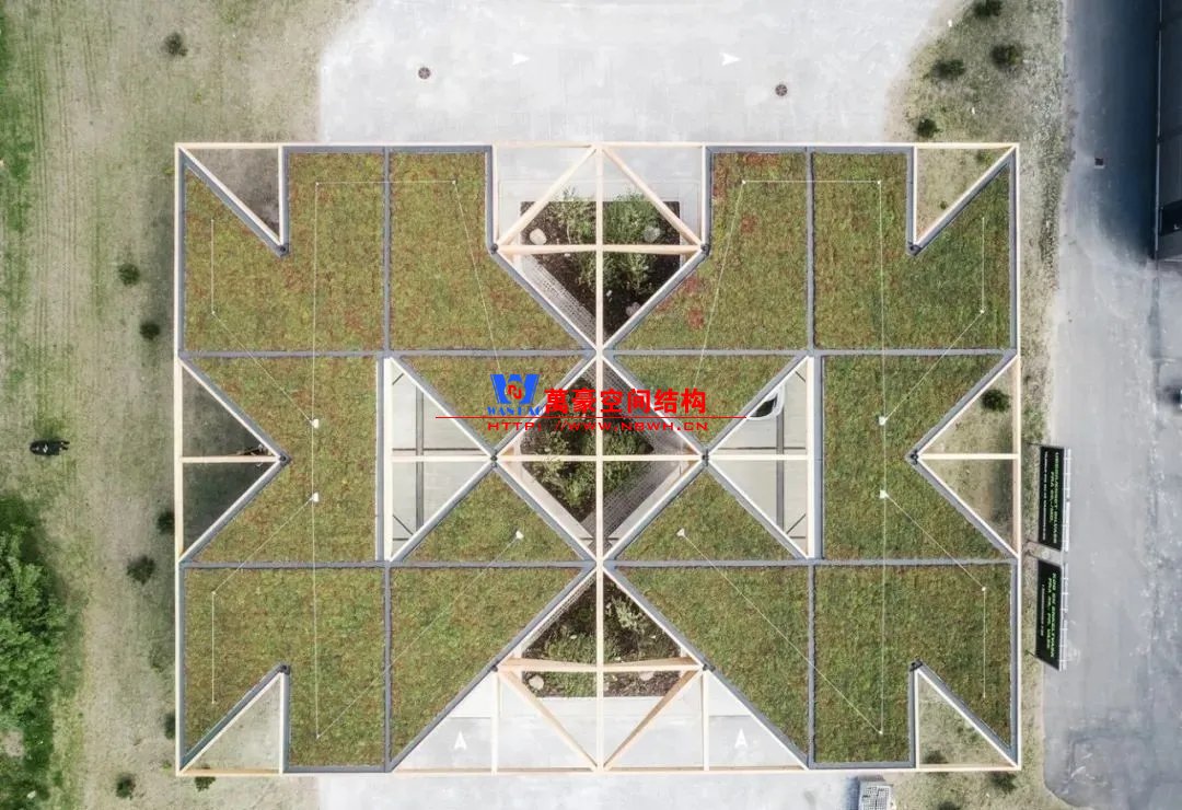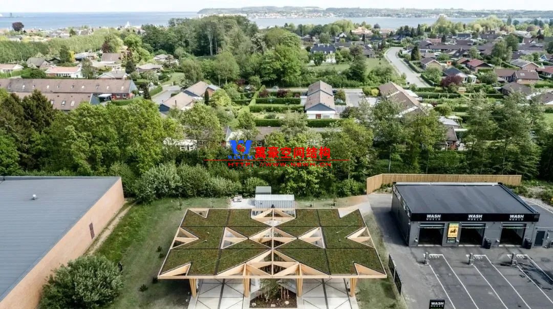 由于模塊化的設計理念,車站是可伸縮的,一顆 “樹” 可以根據需要輕松地變成一個完整的 “樹林”。充電站由有認證的木材和混凝土建造,頂部是太陽能電池板,周圍是與丹麥自然保護協會合作選擇的樹木、草和其他植物,目的是加強車站周圍的生物多樣性。 建筑的所有組成部分都可以被分解成可用的和可回收的材料,選擇木材作為建筑材料進一步強調了建筑的可持續設計。