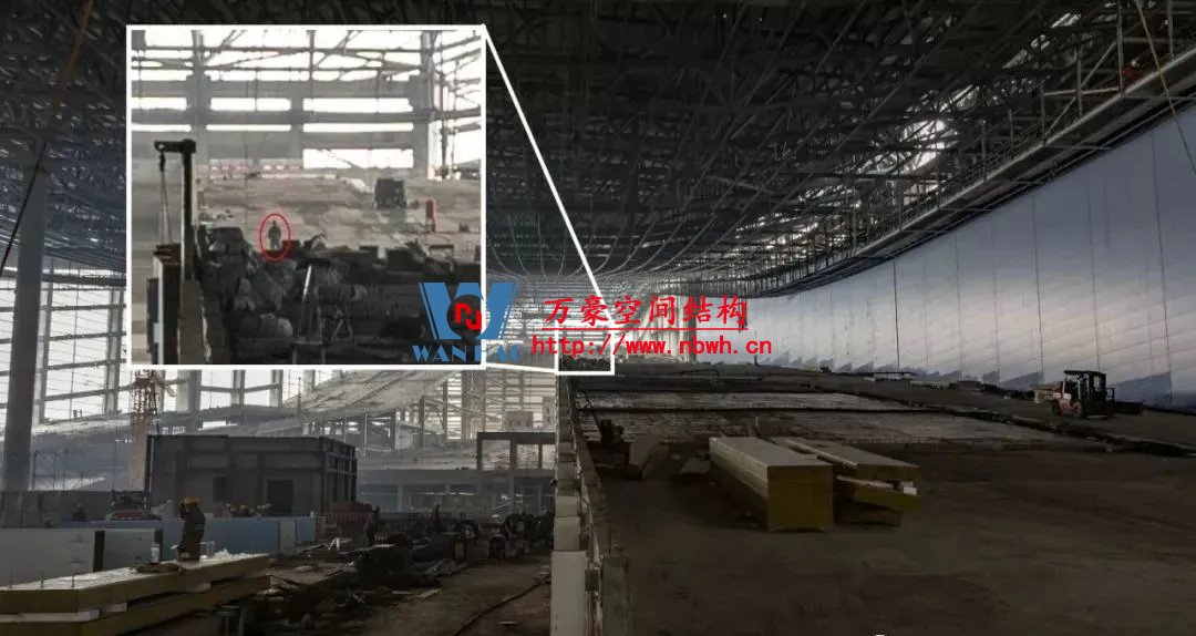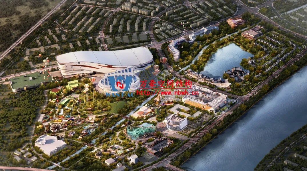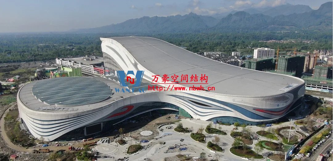 成都融創(chuàng)文旅城水雪綜合體項(xiàng)目是成都融創(chuàng)文旅城的核心主體建筑,主要由雪世界、水世界和停車樓組成,總建筑面積36.76萬平方米,水雪綜合體項(xiàng)目用鋼量約2.4萬噸。其中,雪世界最大長度達(dá)428米,跨度由174米漸變至94米,地下2層、地上5層,整體結(jié)構(gòu)立面高度最低35米,最高85米,是全國最大鋼筋混凝土結(jié)構(gòu)室內(nèi)滑雪場。