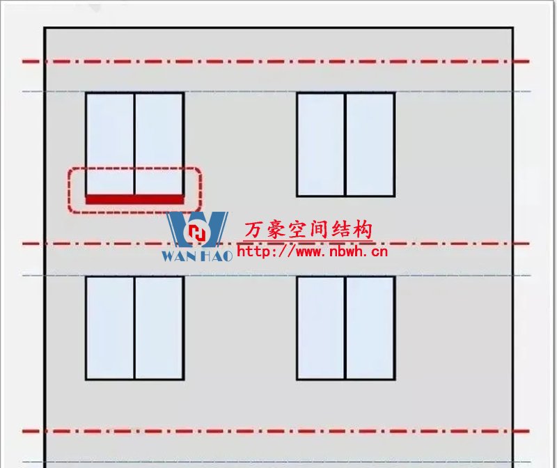 窗戶則是通過四周的框架與洞口連接,以線傳遞的方式將自重和所受荷載傳給主體結構。