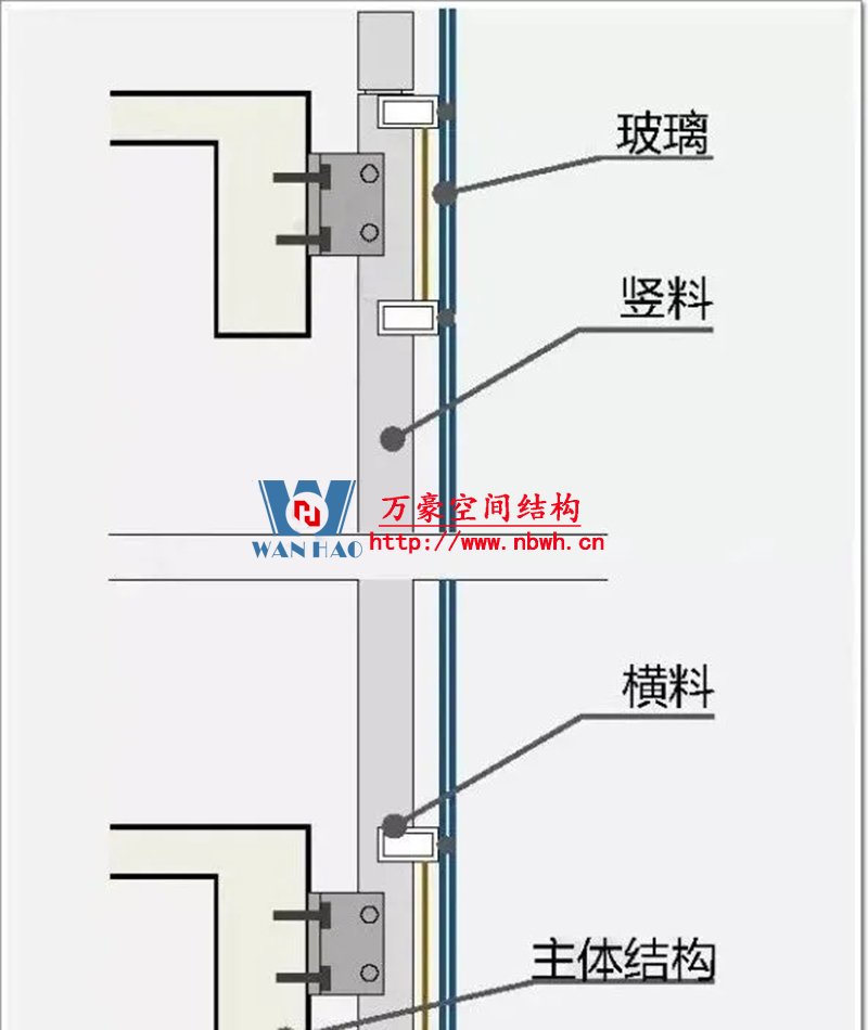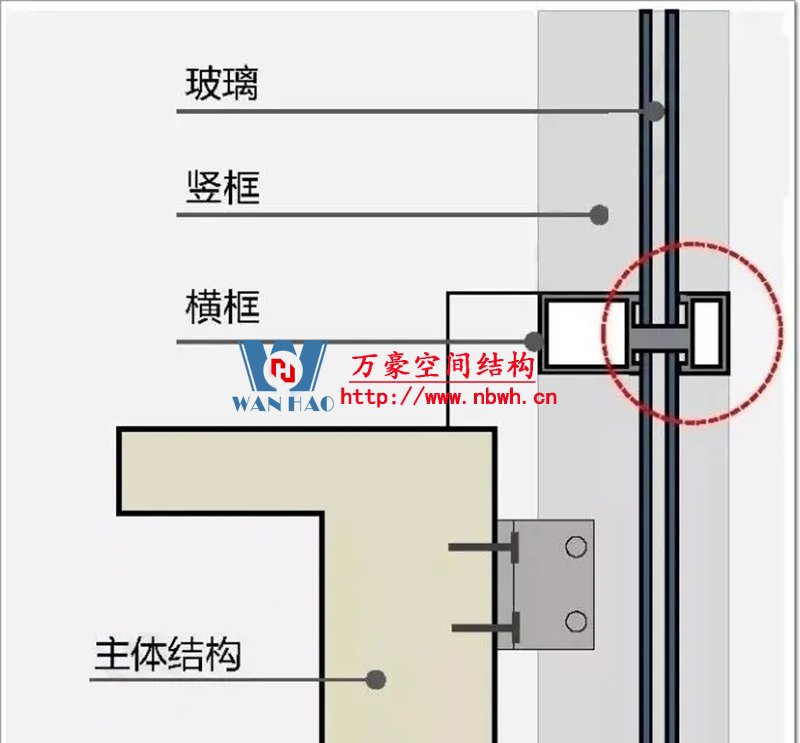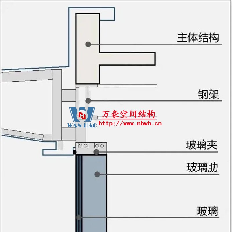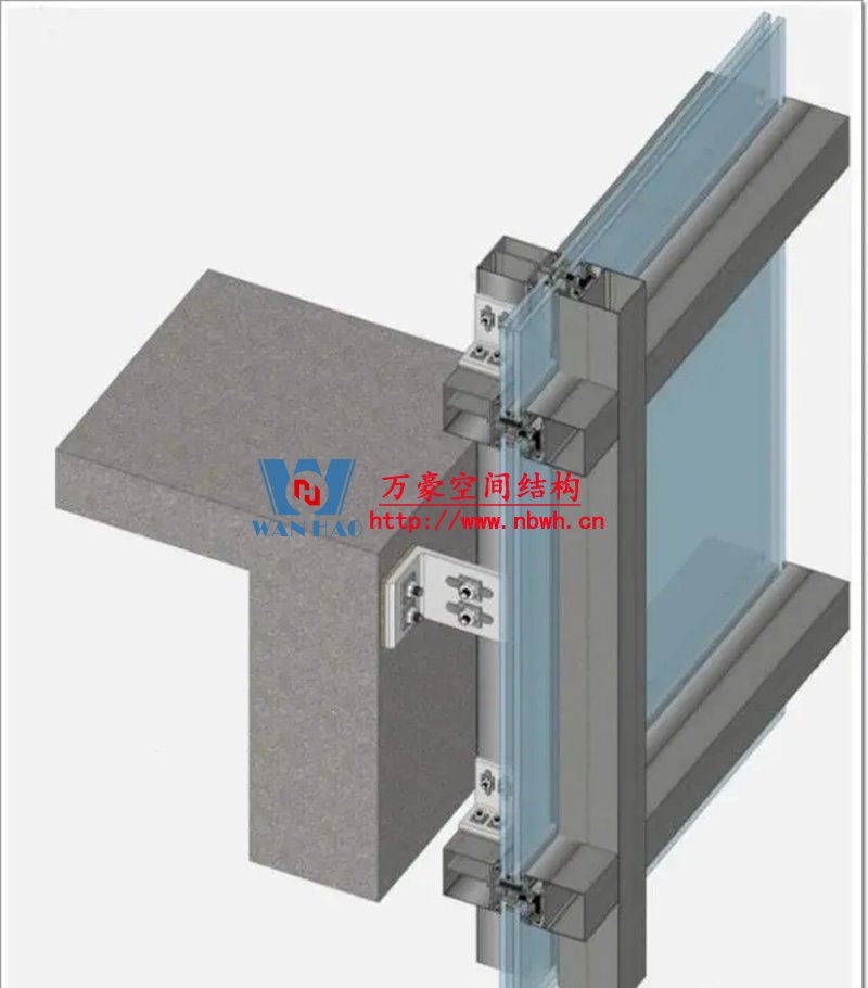 幕墻是通過錨固支座,以點傳遞的方式將自重和所受荷載傳給主體結構。