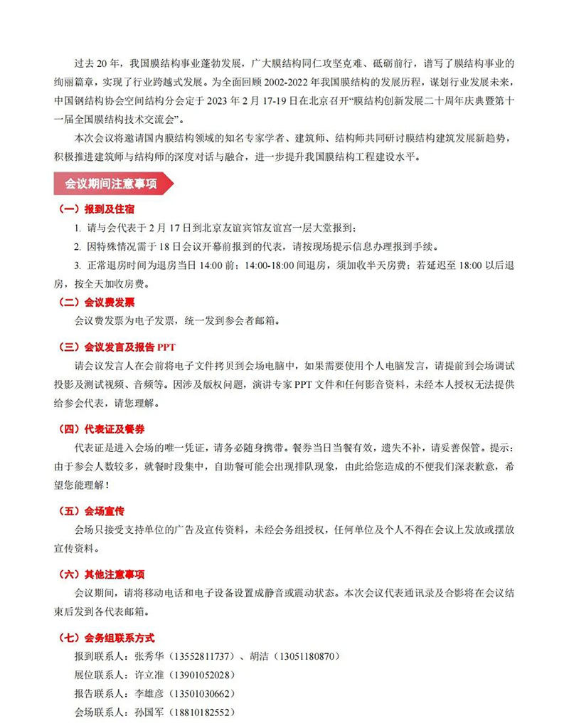 【會議指南】膜結構創新發展二十周年慶典暨第十一屆全國膜結構技術交流會