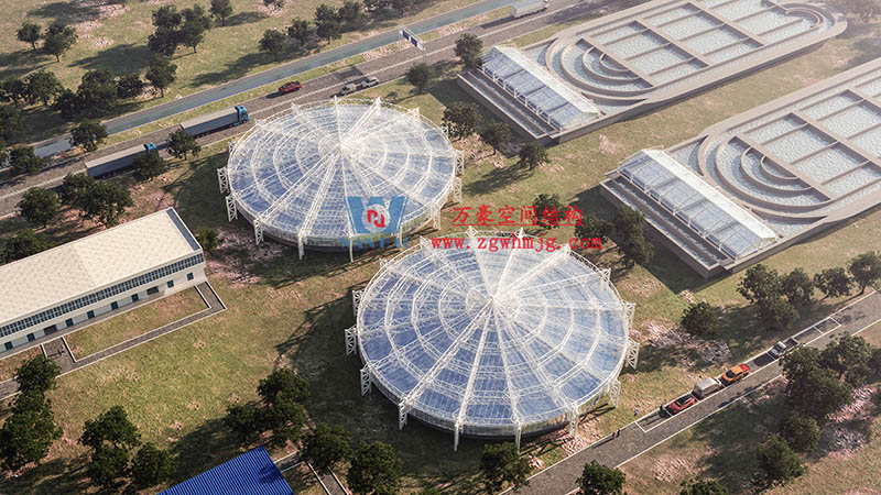 隨著工業(yè)技術(shù)的不斷成熟,污水池加蓋一般采用反吊膜結(jié)構(gòu)形式,對污水池內(nèi)廢氣進(jìn)行處理。這種結(jié)構(gòu)采用膜材反吊的原理,將鋼結(jié)構(gòu)至于膜材外層,這樣,就有效的避免了池內(nèi)廢氣對鋼結(jié)構(gòu)的腐蝕,延長了鋼結(jié)構(gòu)的使用壽命,提高了反吊膜結(jié)構(gòu)的廢氣除臭率。膜結(jié)構(gòu)污水池加蓋方式新穎,采用膜反吊的形式,不僅造型新穎外形美觀,而且適應(yīng)于各種環(huán)境的大跨度池體建筑,比傳統(tǒng)的污水池加蓋更加堅固,也可以解決傳統(tǒng)加蓋方式在大跨度池體上施工困難的問題,更受到污水池工程的喜愛。
