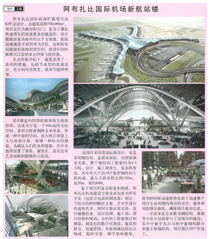 中國多家企業做為鋼結構、幕墻等專業分包商參與了該項目的建設,項目預計2017年竣工。