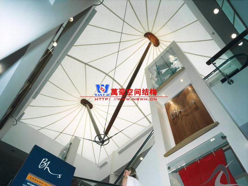 室內(nèi)膜結(jié)構(gòu)是膜結(jié)構(gòu)工程的一種,是將膜結(jié)構(gòu)設(shè)計(jì)技術(shù)應(yīng)用到室內(nèi)而產(chǎn)生的新型室內(nèi)設(shè)計(jì)方式。它是一種全新的結(jié)構(gòu)形式,集建筑學(xué)、結(jié)構(gòu)力學(xué)、精細(xì)化工與材料科學(xué)、計(jì)算機(jī)技術(shù)等為一體,具有很高的技術(shù)含量。其曲面可以隨著設(shè)計(jì)師的設(shè)計(jì)需要任意變化,結(jié)合整體環(huán)境,建造出各種美觀、富有創(chuàng)意的室內(nèi)形象工程。