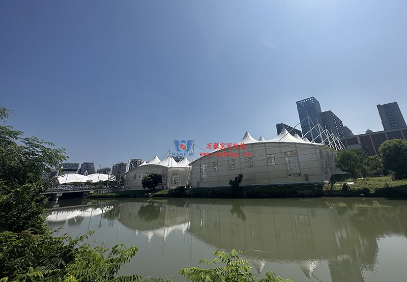 溫州惠民路西側綠地球場鋼膜結構工程,該項目總用鋼量約310噸,PTFE膜結構展開面積約7760平米。