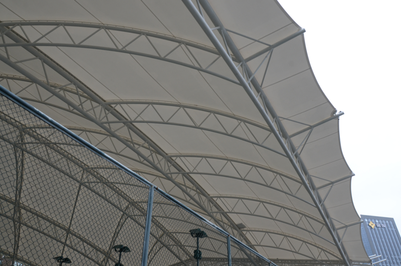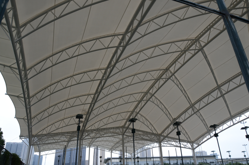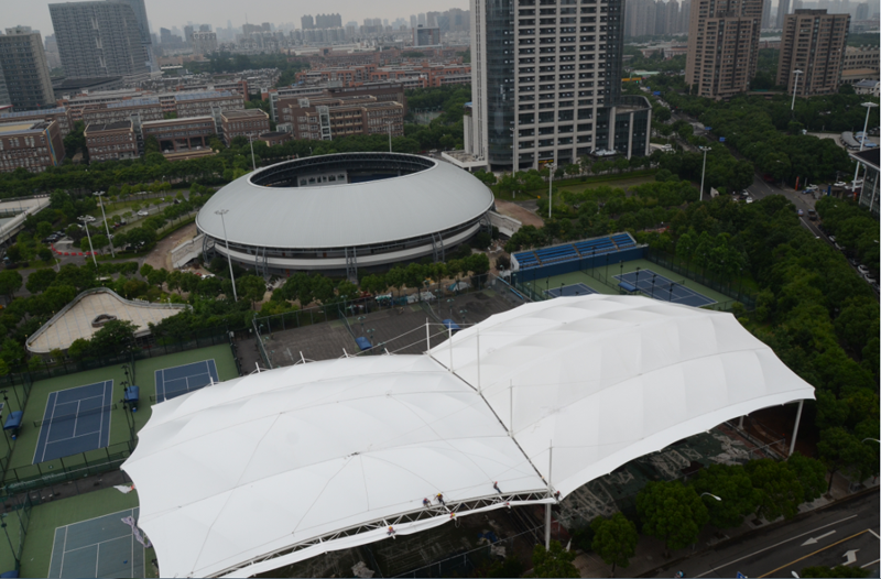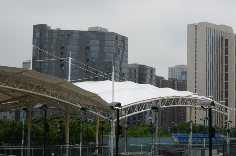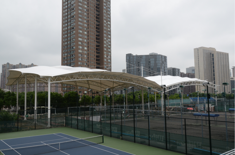 鄞州網球場膜結構工程位于寧波市鄞州區首南街道文華路199號【寧波(鄞州)網球中心內】,膜結構球場展開面積約3700平方米。項目為單片網球場罩篷。采用骨架式結構體系,集休閑、運動、標志性建筑于一體。鋼結構采用Q235B高頻焊管,膜材采用進口建筑膜材,顏色為白色。