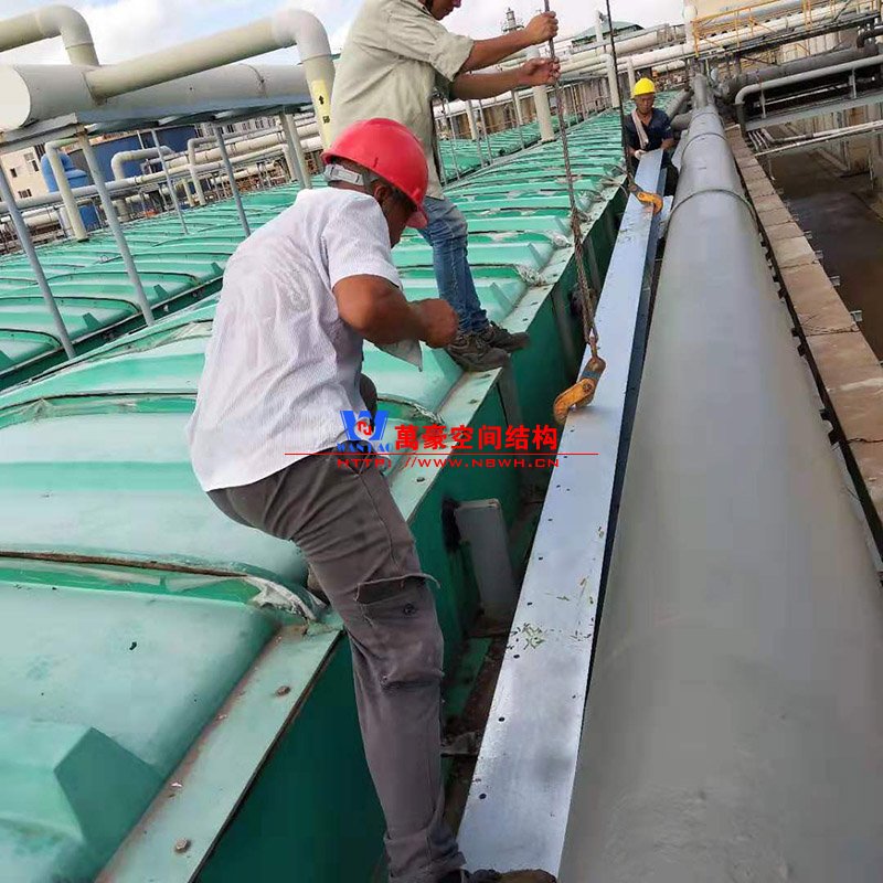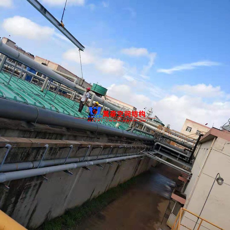 浙江東邦藥業有限公司污水池(好氧池)加蓋密閉膜結構工程位于浙江省臺州市臨海市東邦藥業有限公司內,此工程用鋼量50噸,膜結構展開面積2500平米,由寧波萬豪空間結構工程有限公司承建。