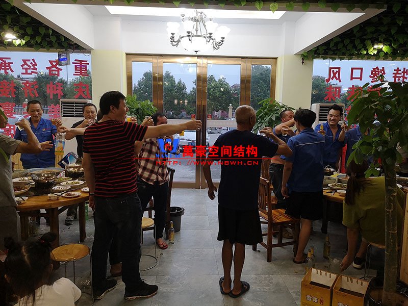中秋節假期馬上就要過去了,想必大家都玩的挺開心吧。不知道你們的中秋是怎么過的,是與家人團聚,還是與朋友歡聚呢?萬豪膜結構就不一樣了,我們是整個工廠員工歡聚一堂,共進晚餐,喜迎中秋。 雖然來自五湖四海,相聚在萬豪,大家就是一家人,我們會為了我們的共同目標一起前進。