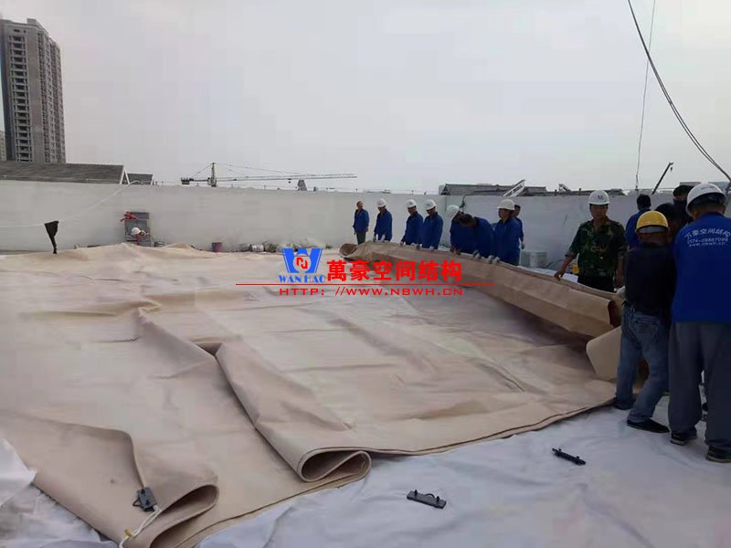 ?目前云朵12356鋼結(jié)構(gòu)及油漆完工;云朵二膜施工完成;云朵一膜施工八片;云朵三膜施工四片。