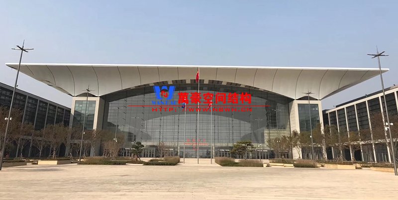 首先,我們觀摩學習了青島紅島國際會展中心PTFE反吊膜結構項目,該項目施工已正式結束。