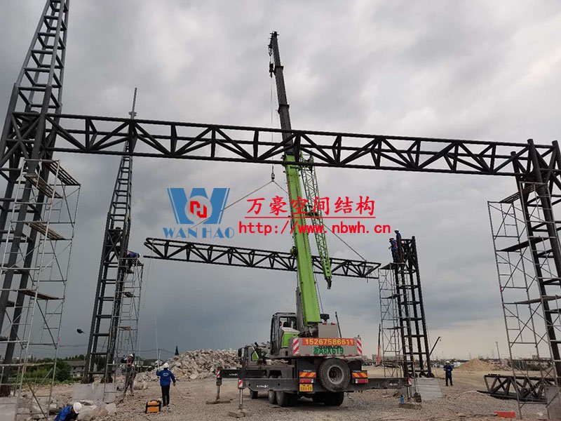 紹興西高速收費站頂棚工程用鋼量80噸,由寧波萬豪空間結構工程有限公司加工和安裝。