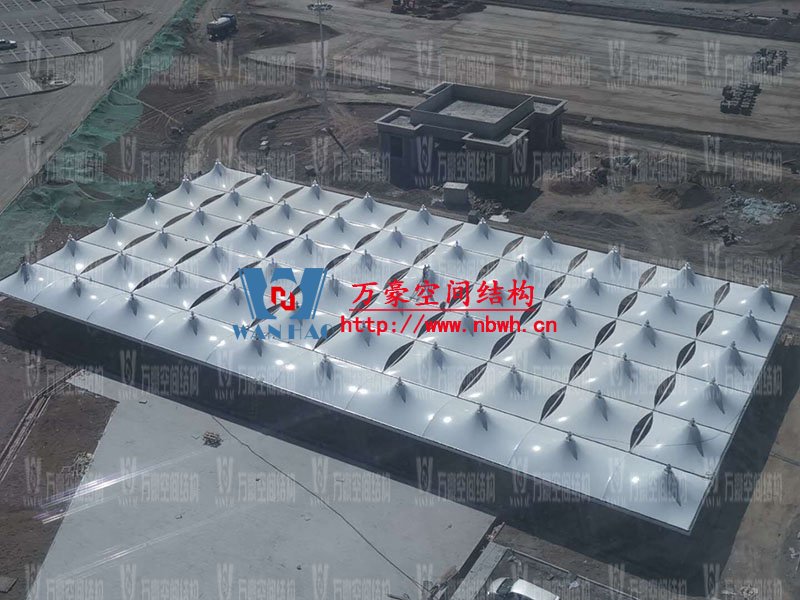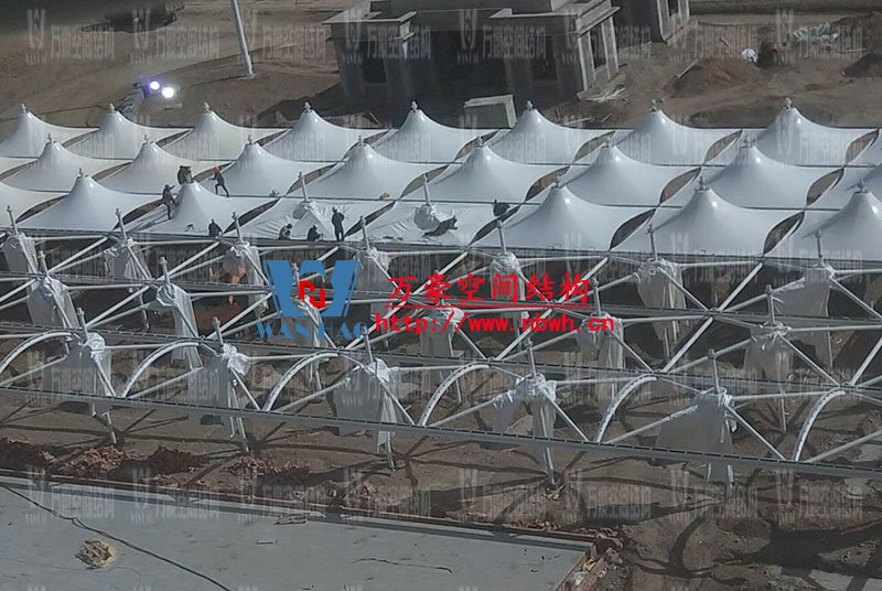 目前A1區(qū)鋼膜結(jié)構(gòu)已全部安裝完成,A2區(qū)鋼結(jié)構(gòu)安裝完成,膜結(jié)構(gòu)正在安裝中。