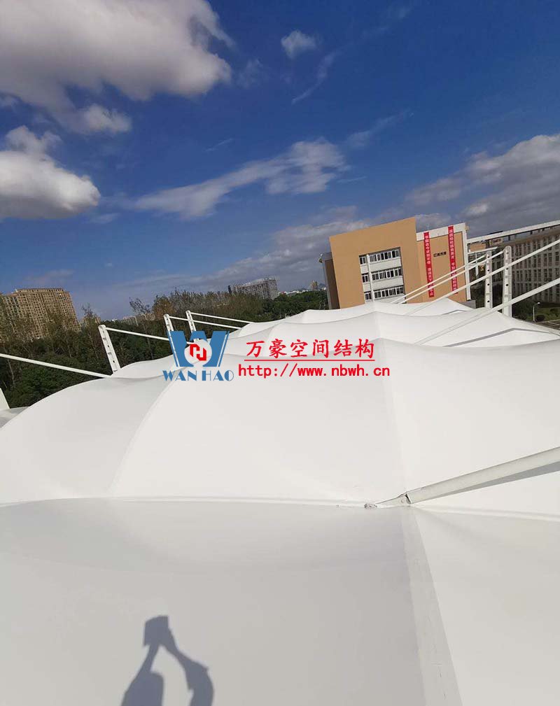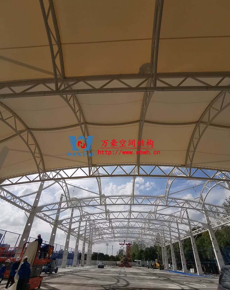 浙江紡織服裝職業技術學院東西校區運動場膜結構項目位于浙江省寧波市,膜結構展開面積6000平米,由寧波萬豪空間結構工程有限公司承建。 目前鋼結構安裝完成,膜結構正在安裝中。 期待整個工程的完工,來領略它別致的風采。