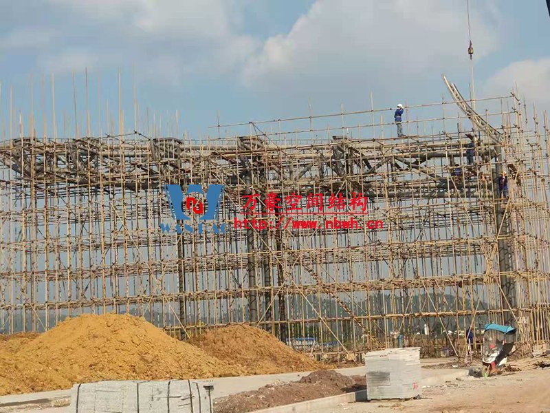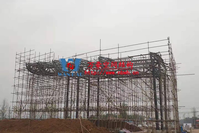 目前,南面的環梁已加焊完成,中間的圈梁加焊完成,北面五個環梁已吊裝完成,加焊中,第六個環梁正在吊裝中。