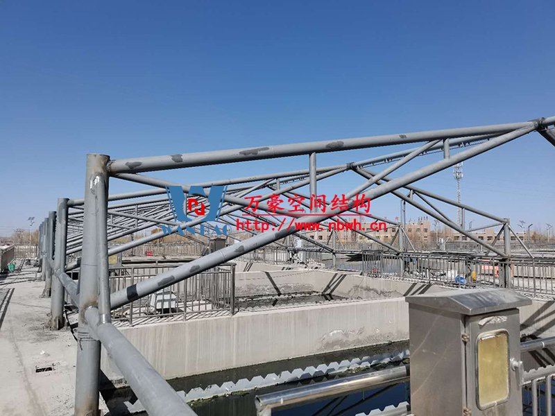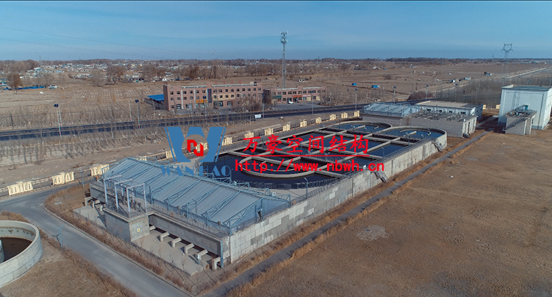 該工程主要建設格爾木工業園昆侖工業區工業污水處理廠首期2.5萬立方米/天工程二沉池、水解酸化池和預沉池池體保溫膜結構安裝。項目用鋼量230噸,膜結構展開面積5000平米。