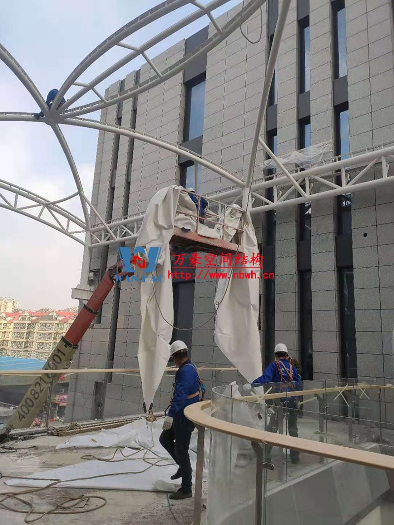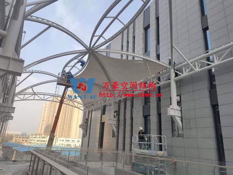 其中,新泰卓越·財富廣場膜結構屋頂項目由寧波萬豪空間結構工程有限公司承建。