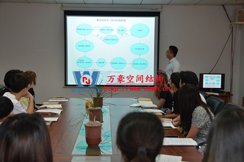 為更好的掌握膜結構技術知識,更專業的為客戶服務,2021年6月25日,萬豪空間結構對新進員工進行了膜結構專業知識培訓。