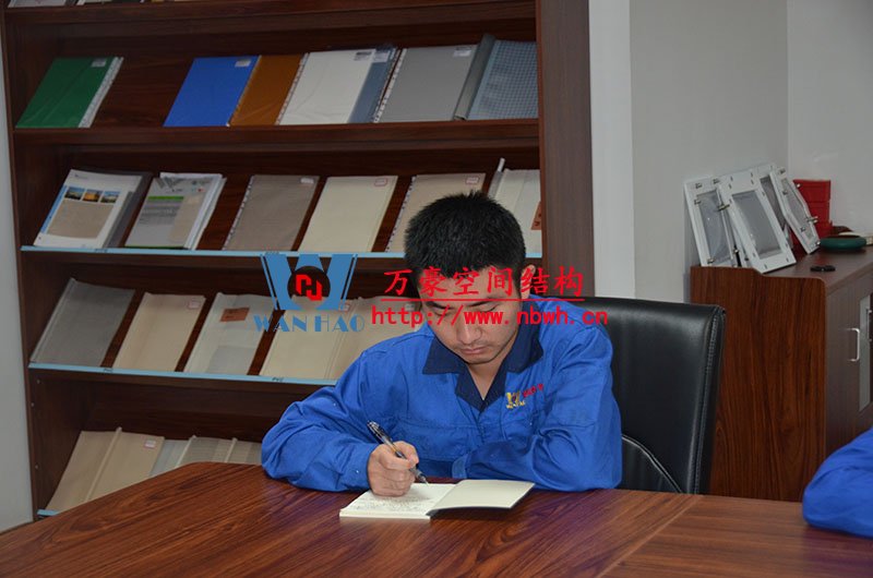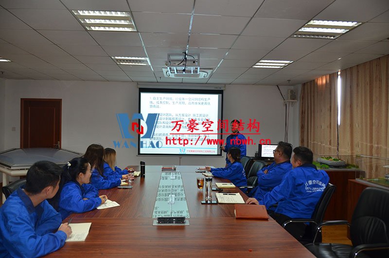 然后,我們的銷售主管教員工們學習了膜材料分類、膜結構優勢及應用領域、膜結構產品結構形式等。