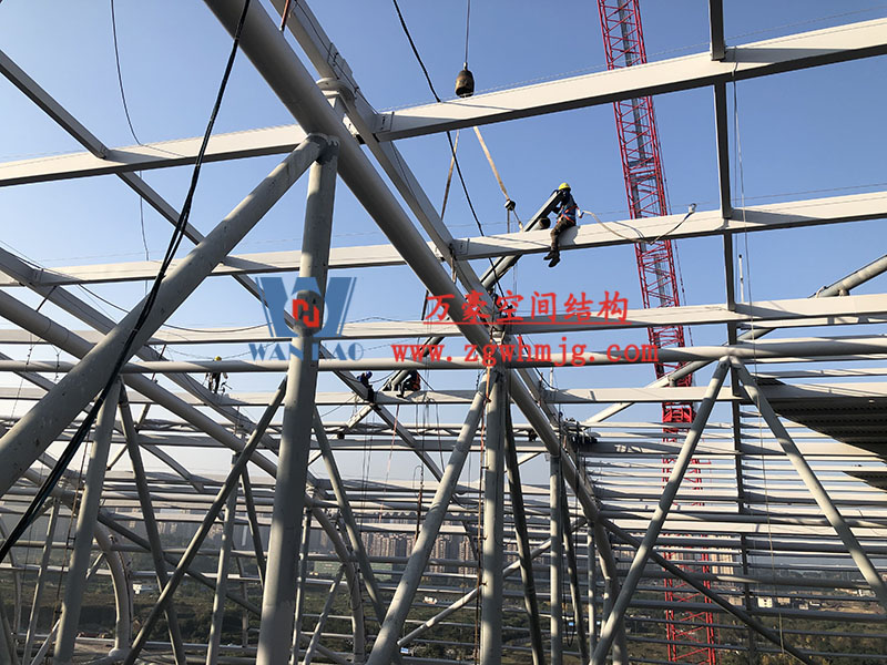 目前,項目內(nèi)環(huán)鋼結(jié)構(gòu)全部完成,屋面鋼結(jié)構(gòu)全部完成,立面鋼結(jié)構(gòu)完成60%,屋面膜結(jié)構(gòu)完成90%,內(nèi)環(huán)膜結(jié)構(gòu)完成25%。