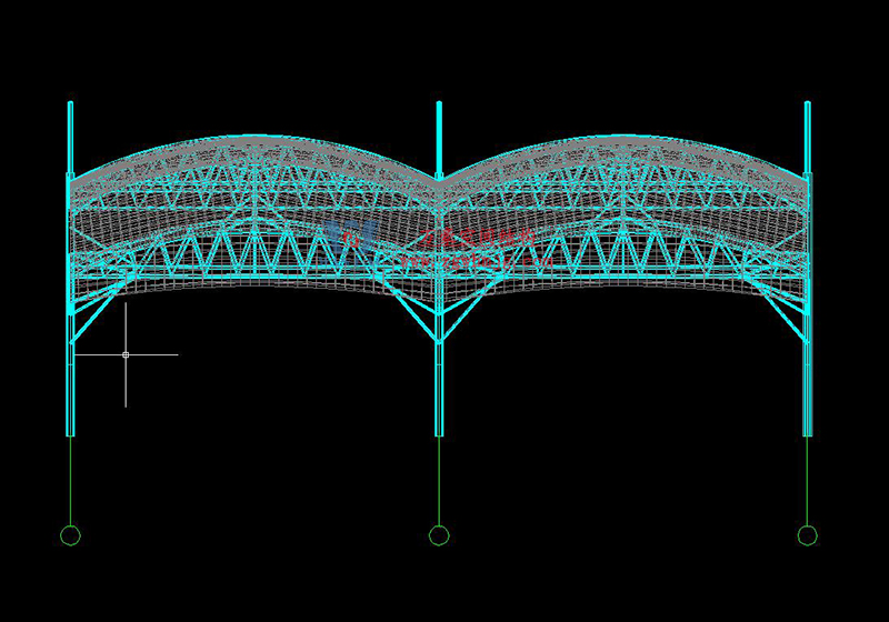 球場采用膜結構形式,可以充分發揮建筑師的想象力,又體現結構構件清晰受力之美。作為一種柔性材料,其在建筑上的造型變化多端,是其它材料所不能比擬的,因此也造就了膜結構多變的特性,充分體現出建筑形體塑造力和輕盈、飄逸的動感曲線外觀。