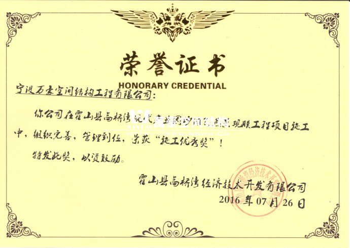 霍山縣飛燕景觀膜項目榮獲“施工優(yōu)秀獎”
