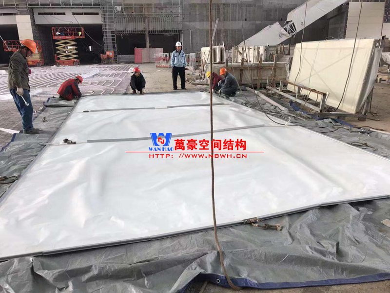 青島國際會議中心幕墻膜結構進入內膜安裝階段