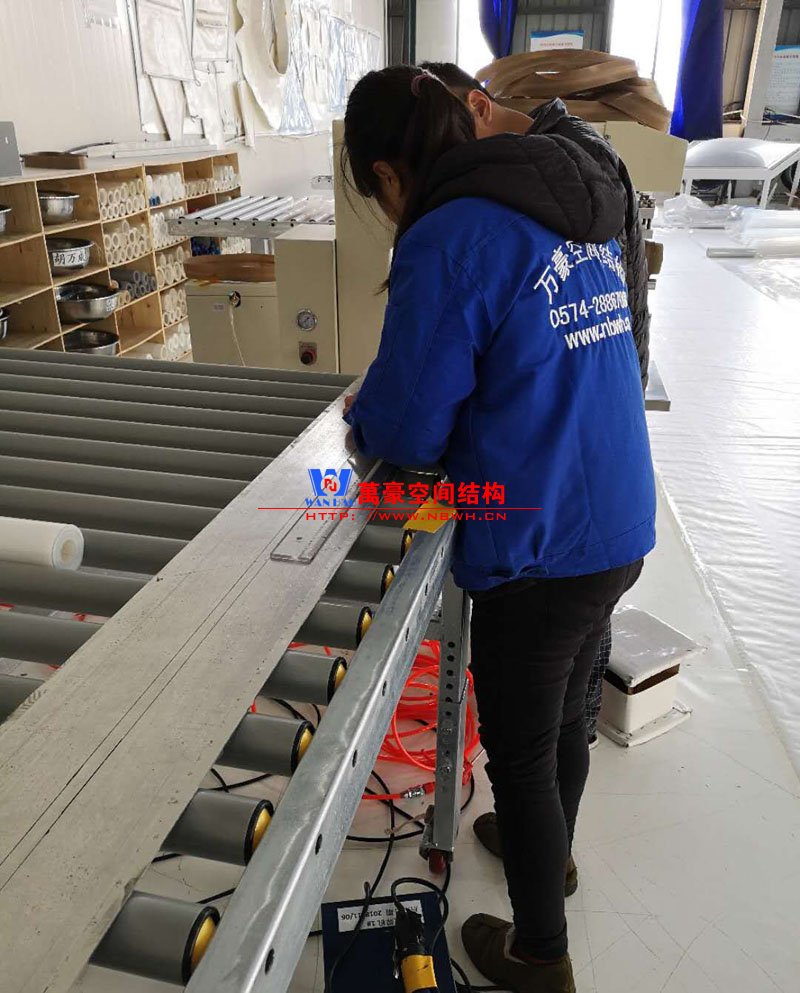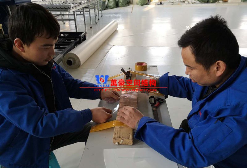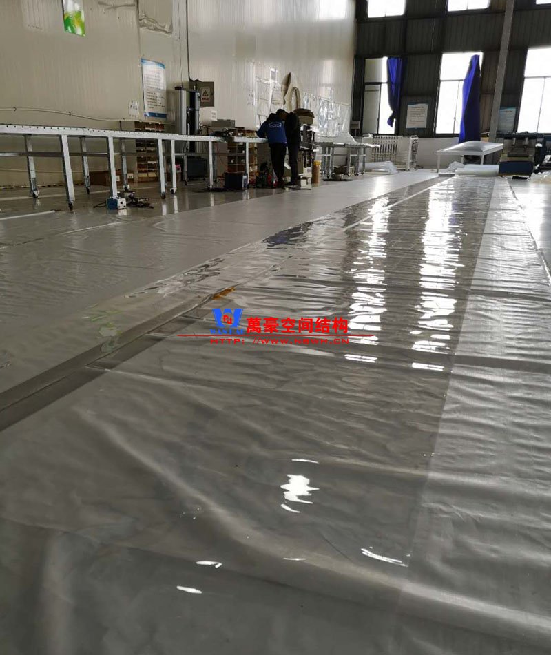 近日,萬豪接了一個ETFE膜結構車棚加工項目,那就是廣安公交車棚項目。這個項目的鋼結構加工以及膜結構加工都是在萬豪工廠內完成。